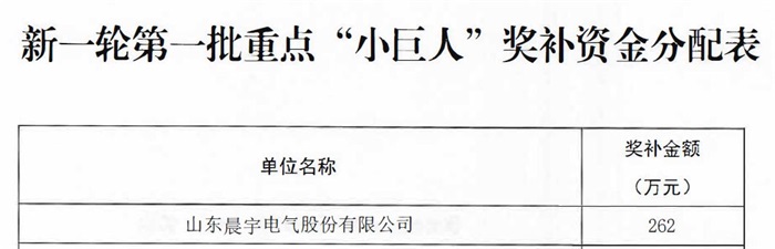 2022年公司入選國家第四批專精特新“小巨人”企業(yè),2024年晨宇電氣憑借技術(shù)研發(fā)實力、自主創(chuàng)新能力榮耀上榜,成功躋身國 家級專精特新重點“小巨人”企業(yè)行列。此次入選國 家級專精特新重點“小巨人”企業(yè),更加證明了晨宇電氣**的科技實力。