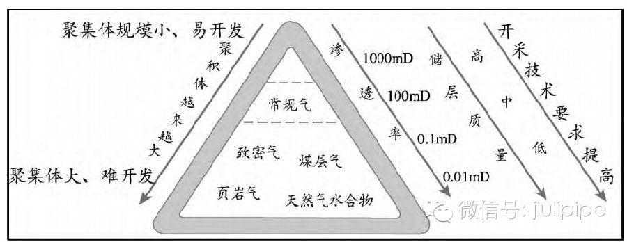 非常規(guī)氣主要有頁巖氣、致密氣、煤層氣3種,非常規(guī)氣與常規(guī)氣的儲層性質(zhì)是逐漸變化的。