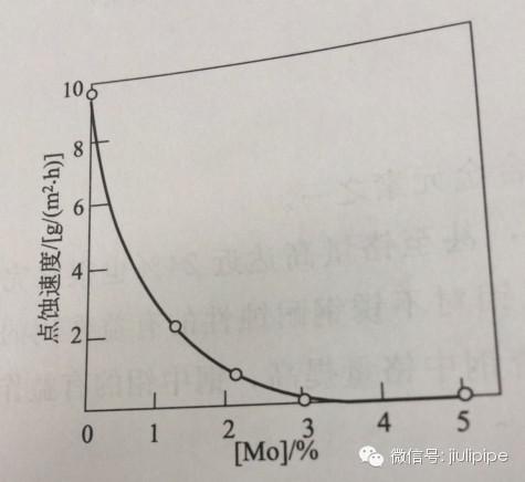 研究已證實,在海洋性大氣中,緊靠鉻,甚至鉻量高達近24%也很難完全防止不銹鋼的銹蝕,必須加入鉬元素。但鉬對不銹鋼耐蝕性的有益作用的前提是鋼中必須含有足夠量的鉻元素。而且隨著鋼中鉻量提高,鋼中鉬的有益作用也會顯著增加。